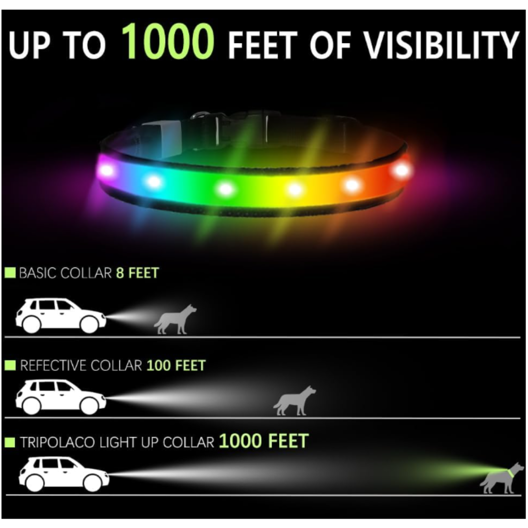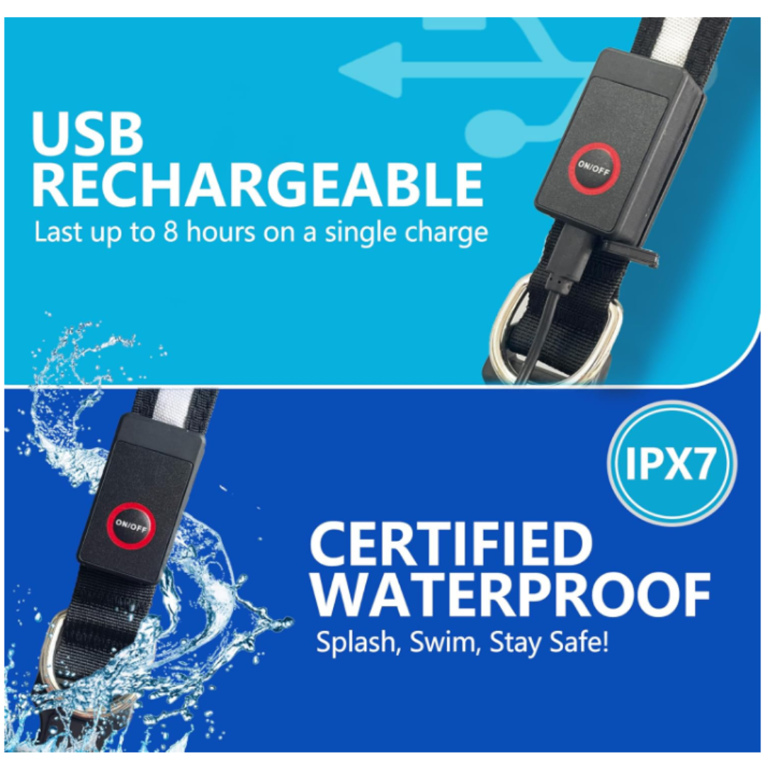 Este Collar de Seguridad Nocturno para perros, garantiza que tu peludo esté siempre visible